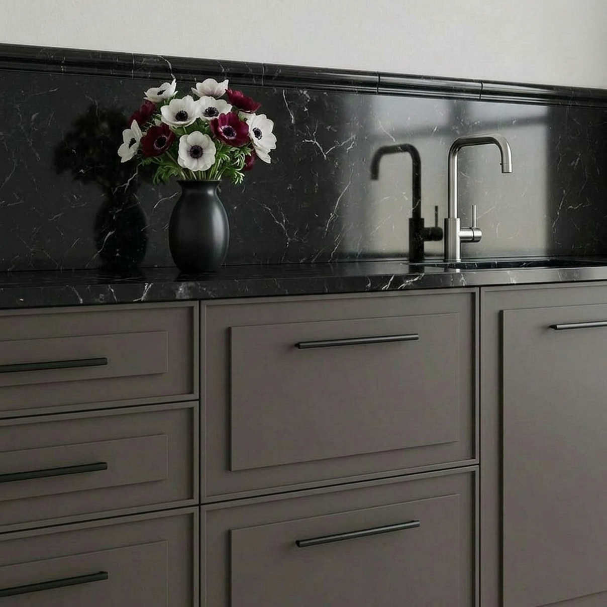 Фасады из МДФ облицованы уникальной износостойкой плёнкой, обеспечивающей защиту от влаги и царапин, что гарантирует долговечность и сохранение безупречного внешнего вида кухни даже при интенсивном использовании.